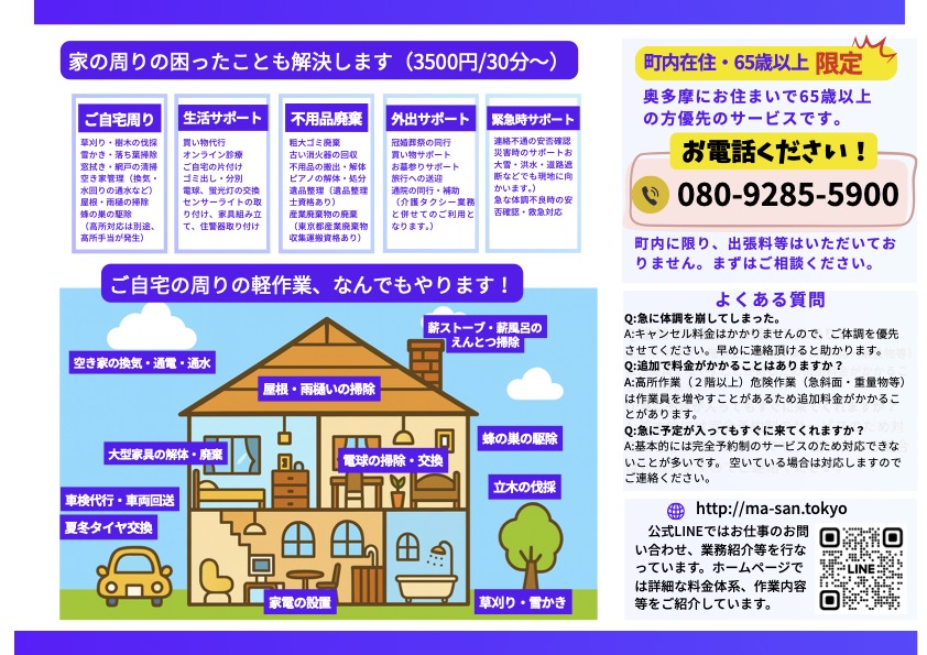 西多摩ライフケアサポートでは、「ちょっとした困りごと」を手軽に解決する“なんでも屋”サービスを提供しています。